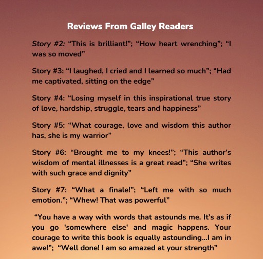 • Read the author’s seven, poignant, true stories of her life’s many punishing episodes